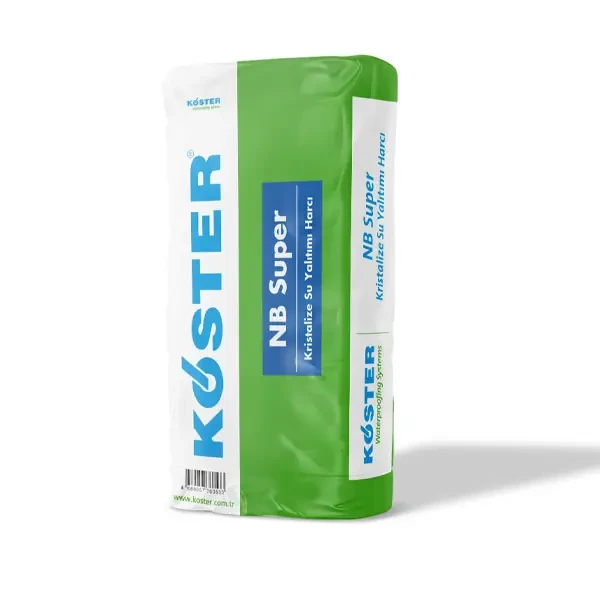 KÖSTER NB Süper çimento esaslı, tek ürünlü kristalize su yalıtımı harcıdır. Su yalıtımının yanı sıra beton yapıları, deniz suyu, atık su, agresif temel suyu ve inceltilmiş kimyasallara karşı koruma amacı ile kullanılır. Negatif ve pozitif olarak 13,8 bar su basıncına dayanımlıdır.